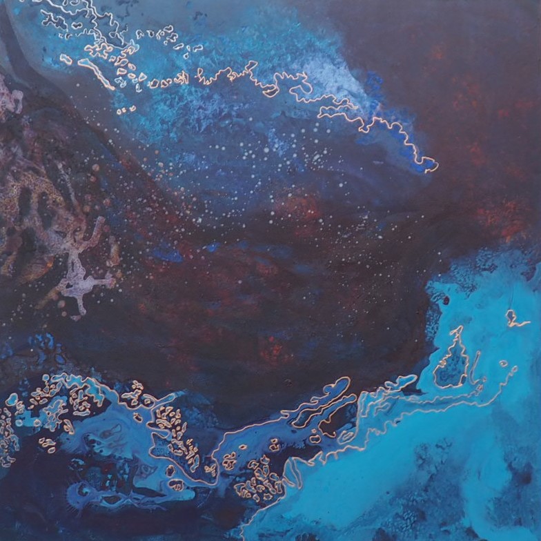 Er wordt gewerkt met acrylverf, een materiaal dat zeer veel mogelijkheden biedt.